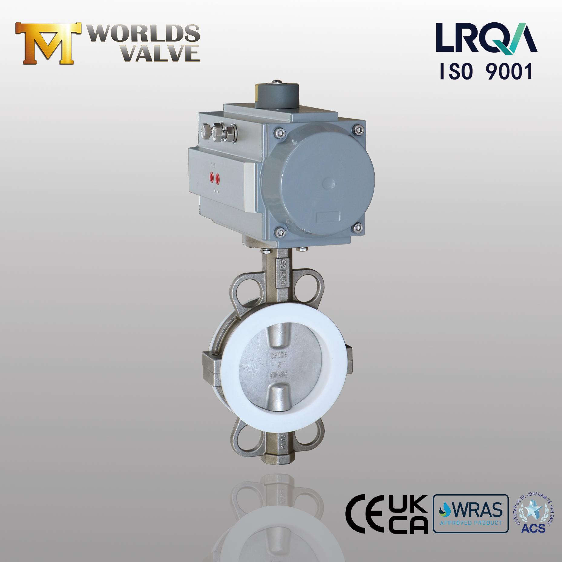 Källa CE, UKCA, ACS, WRAS och ISO 9001 Certified Split Body PTFE -fodrade SS -fjärilsventil med pneumatisk aktivering från en ledande fjärilsventiltillverkare - Tianjin Worlds Valve Co., Ltd .. Konkurrenskraftig prissättning, snabb leverans -Begär en offert idag!